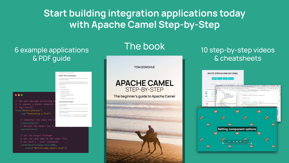PLUS: π¨ 6 example applications for you to learn from and play with, featuring a range of Camel components and integration styles.